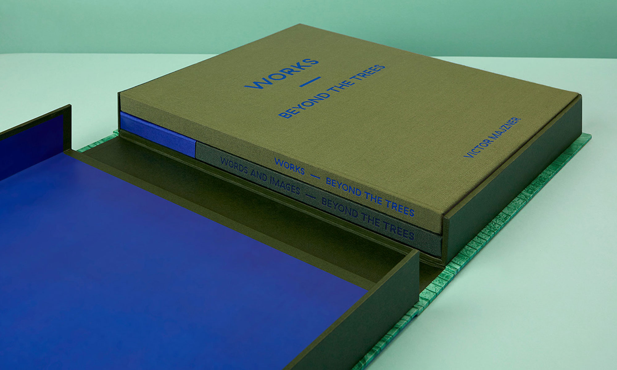 A prime example is the set of books designed and produced for renowned artist Victor Majzner, celebrating his series of works titled ‘Beyond the Trees’. This highly detailed and desirable set showcases Majzner’s powerful and poetic response to climate change, the environment, and the preservation of diversity.